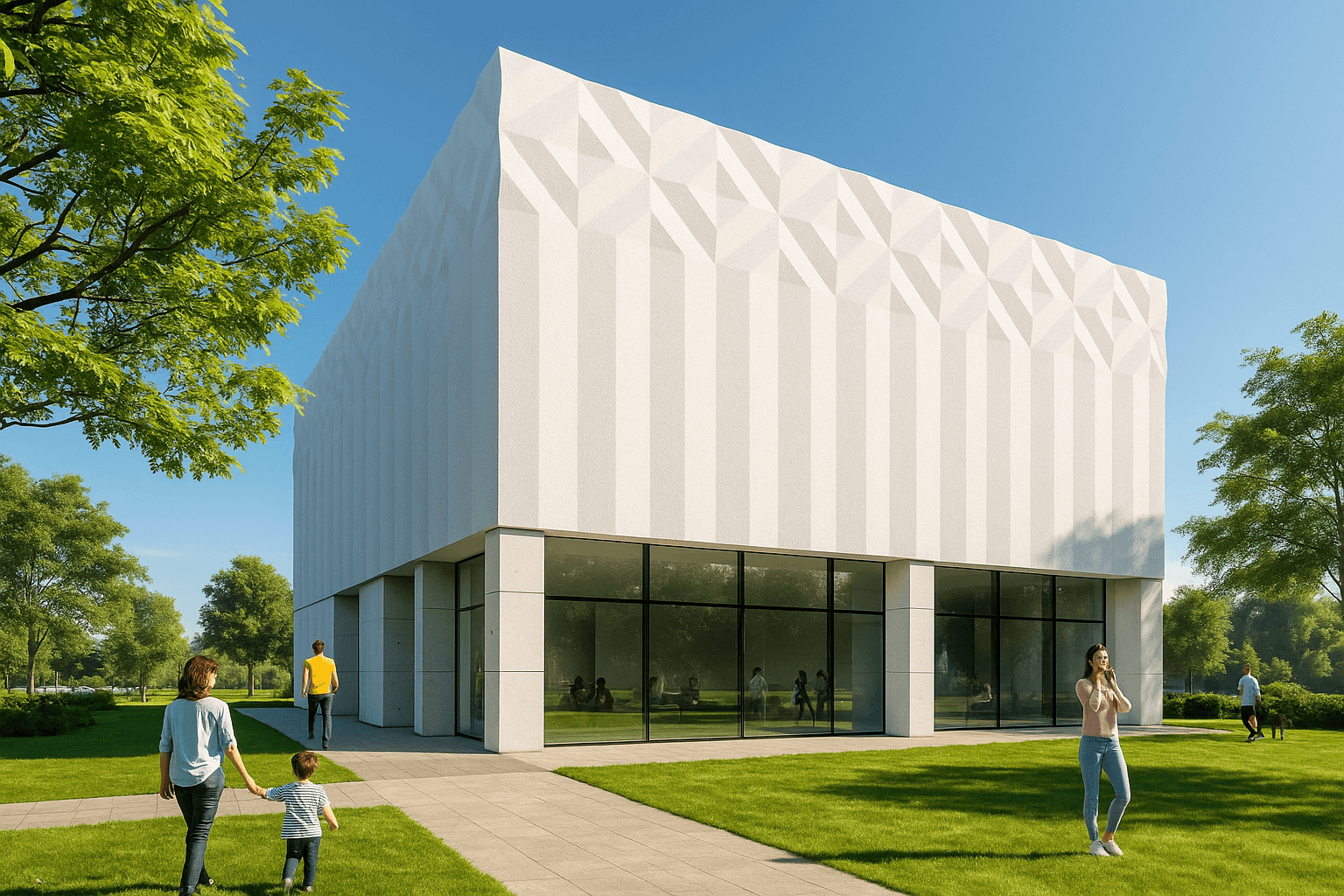 Projekt elewacji 3D pełni nie tylko funkcję estetyczną, ale również technologiczną. Ukształtowana powierzchnia budynku została zaprojektowana jako ekran do projekcji mappingu oraz spektakli świetlnych.