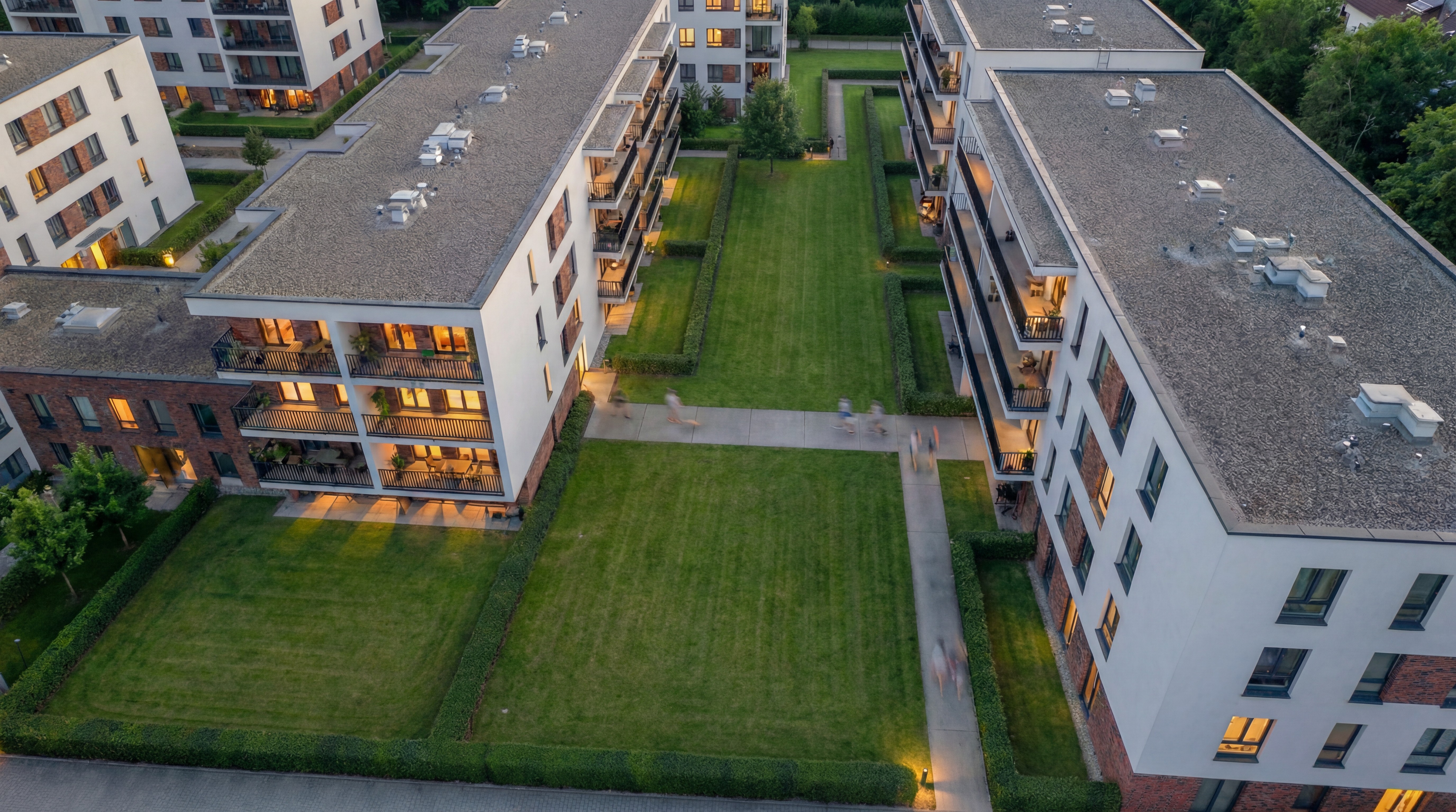 Osiedle zostało zaprojektowane z uwzględnieniem sąsiednich terenów leśnych oraz istniejącej zieleni. Wkomponowane nasadzenia i półprywatne dziedzińce nadają kompleksowi kameralny charakter, mimo miejskiej lokalizacji.