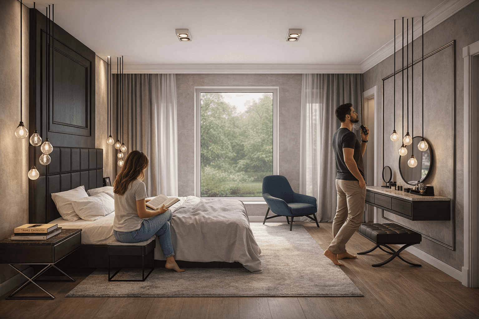 Projekt sypialni – buduarowy klimat i nastrojowe oświetlenie
